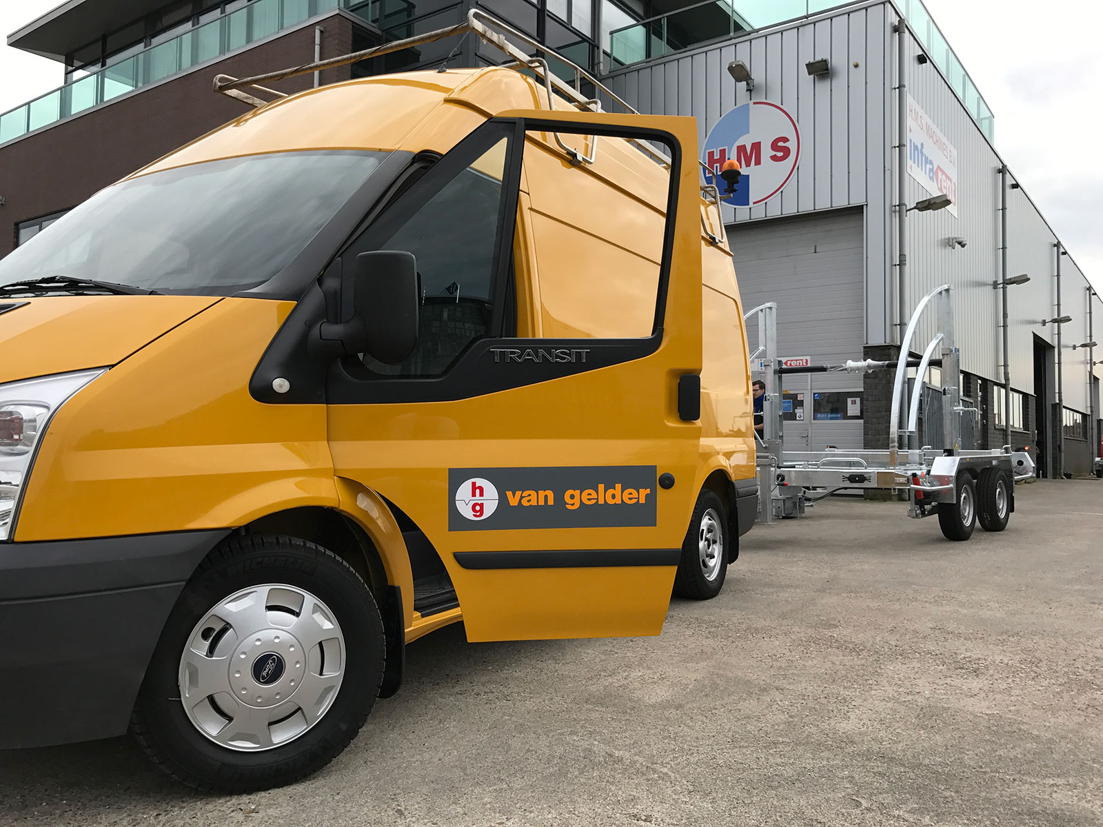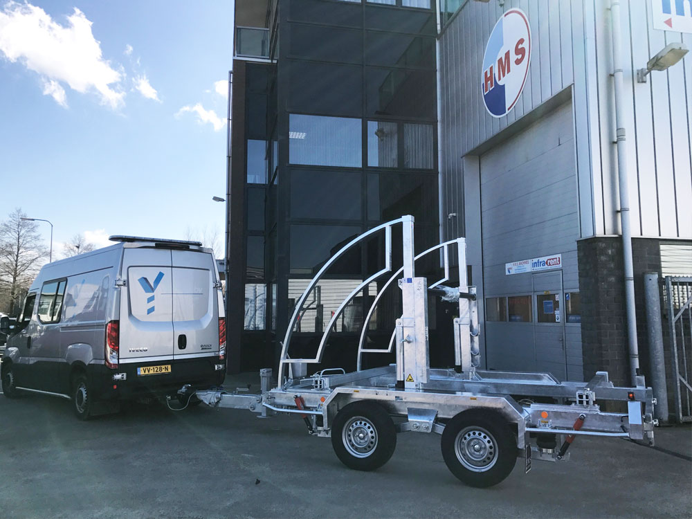 Opnieuw haspelwagen aan gele bus van Van Gelder gekoppeld