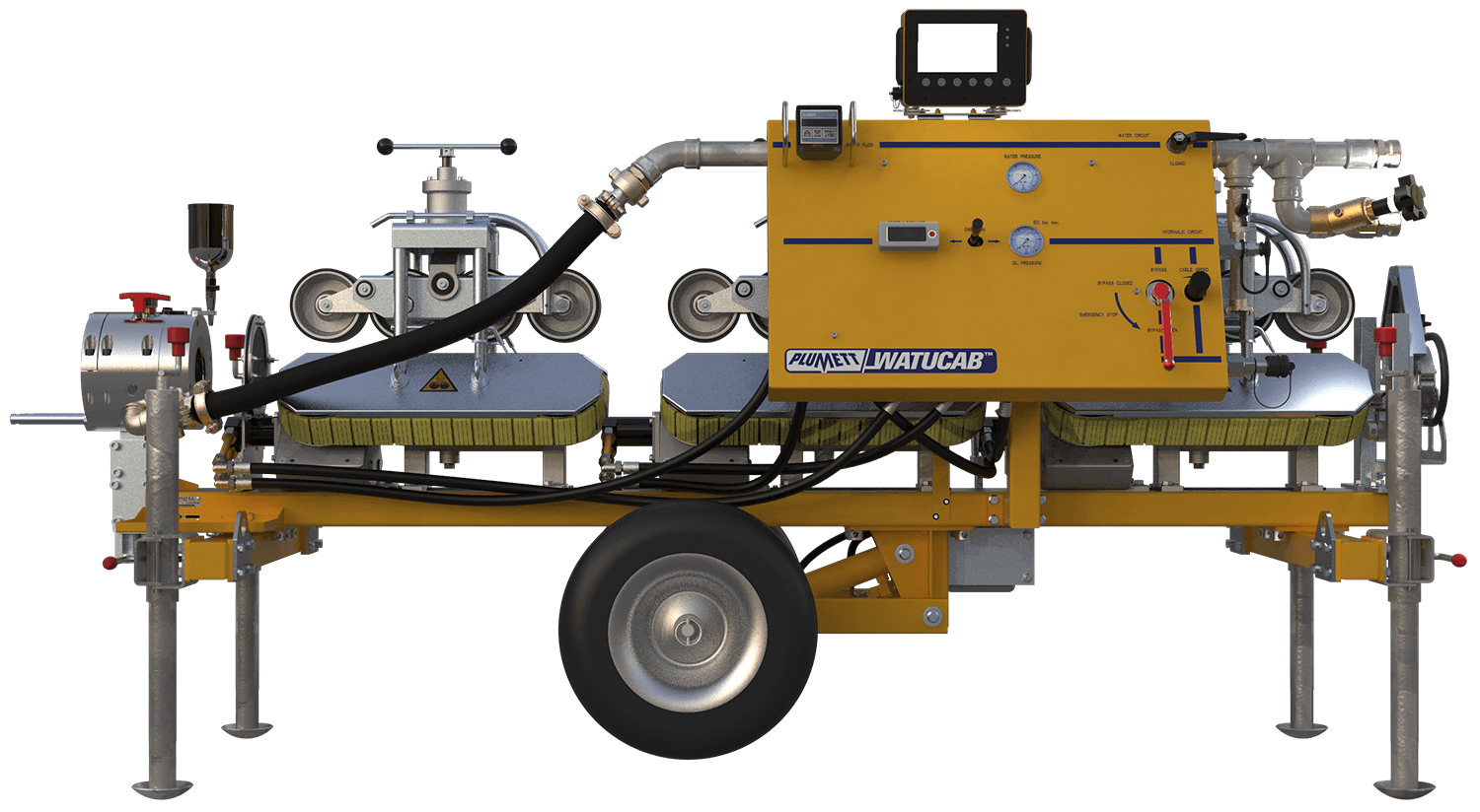 Met behulp van drie speciale kabeltransporteurs die een kracht leveren van 1350 Nm bij een maximale snelheid van 20 m/min, kunt u profiteren van het Watucab-systeem voor midden- en hoogspanningskabelinstallaties.